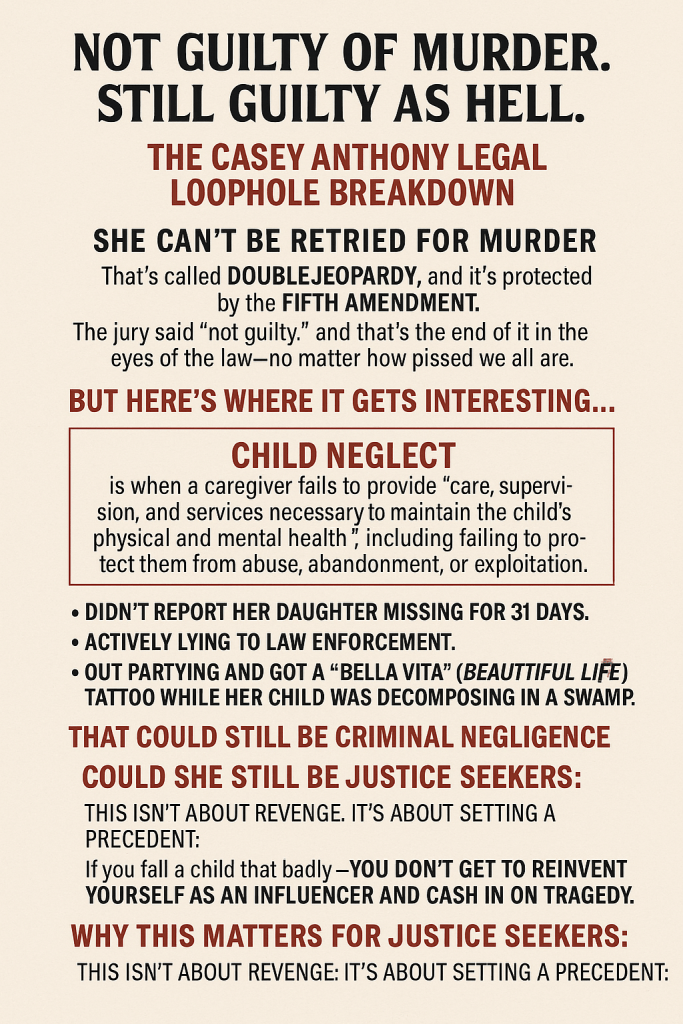 And now that same mother—Casey Anthony, a human gas leak—gets to rebrand herself online like she’s just misunderstood.